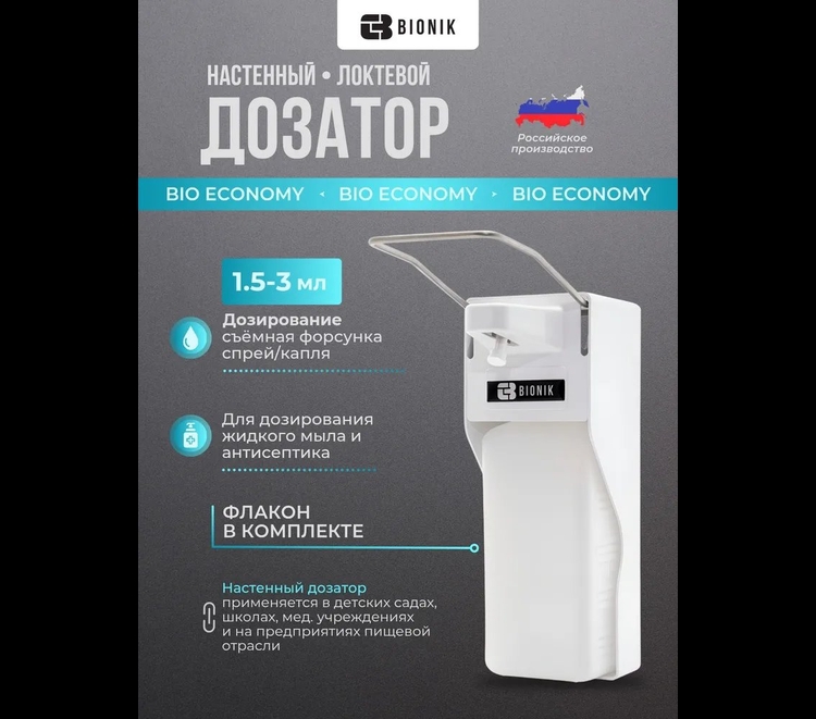 ГлавнаяКаталогДезинфекция и стерилизацияПриборы дезинфекции и стерилизацииДозатор настенный локтевой Био эконом, пластиковый, c мет. рычагом и распылителем, 1лДозатор настенный локтевой Био эконом, пластиковый, c мет. рычагом и распылителем, 1л1 404 ₽Обновление цен от 8 апреля 2026Добавить к сравнению.В корзинуНаличие: МалоИнформация об оплатеНаличный расчетБанковский переводБезналичный расчёт для организацийИнформация о доставкеДоставка по КрасноярскуСамовывозОписание товара Характеристики Вопрос-ответ 0Видео о товаре Отзывы 0Наличие Красноярск1Полное наименованиеДозатор настенный локтевой Био эконом, пластиковый, c металлическим рычагом и распылителем, 1лНаличие Абакан1ИнформацияОбслуживание и ремонтОбслуживание и ремонт