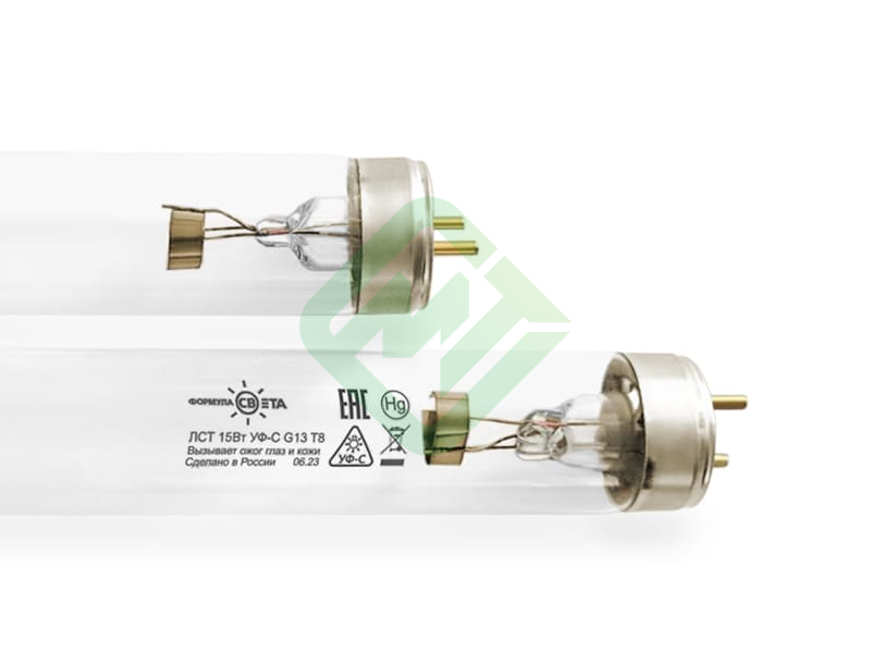 Лампа бактерицидная ЛСТ 15 Вт УФ-С, длина 451.6мм, Ø колбы 25,5мм, тип цоколя: G13, колбы Т8