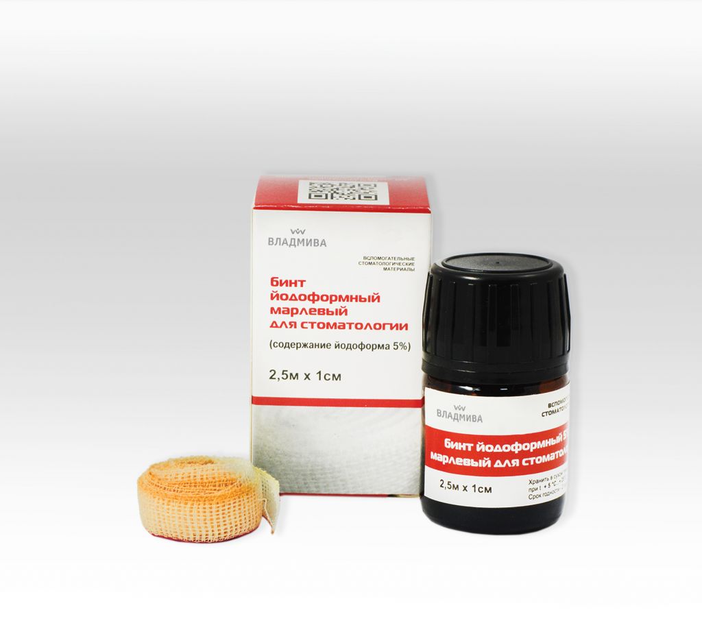 Описание товара Характеристики Вопрос-ответ 0Видео о товаре Отзывы 0Полное наименованиеБинт йодоформный марлевый для стоматологии, уп-2.5м * 10мм (Владмива)