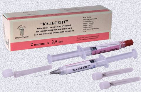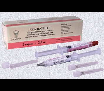 Кальсепт - стерильная гидроокись кальция, уп.- 2 шпр. по 2.5г + 20 канюль (Омега)