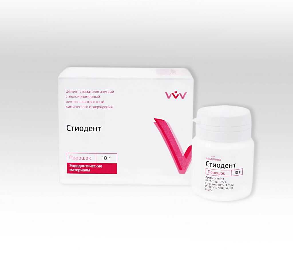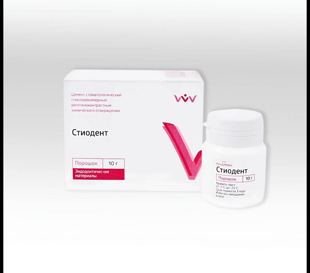Стиодент порошок водозатворимый стеклоиономерный цемент для пломбирования каналов 10г (Владмива)