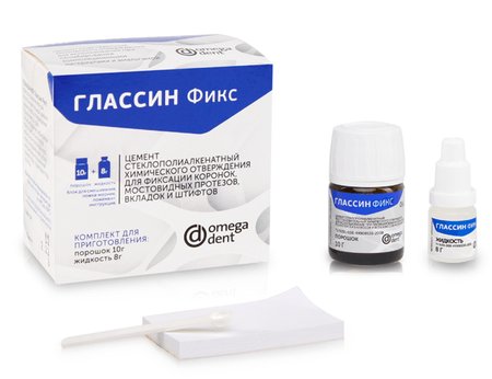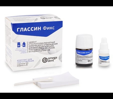 Глассин Фикс - стеклоиономерный цемент для фиксации, уп- порошок10г + жидкость 8мл (Омега)