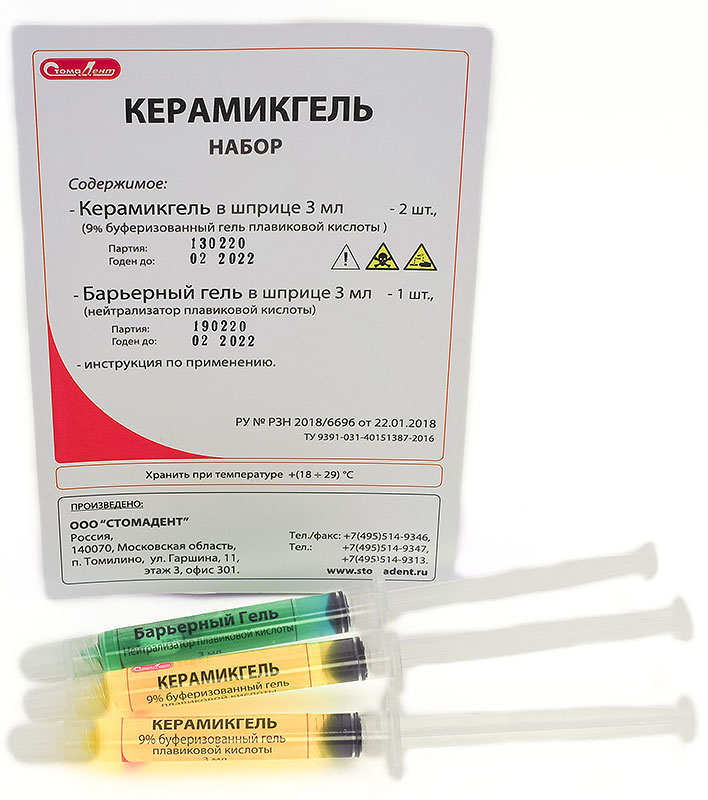 Керамик гель - набор 2шпр. по 3мл, барьер гель 1шпр.* 3мл, травление ортопедич. конструк из керамики