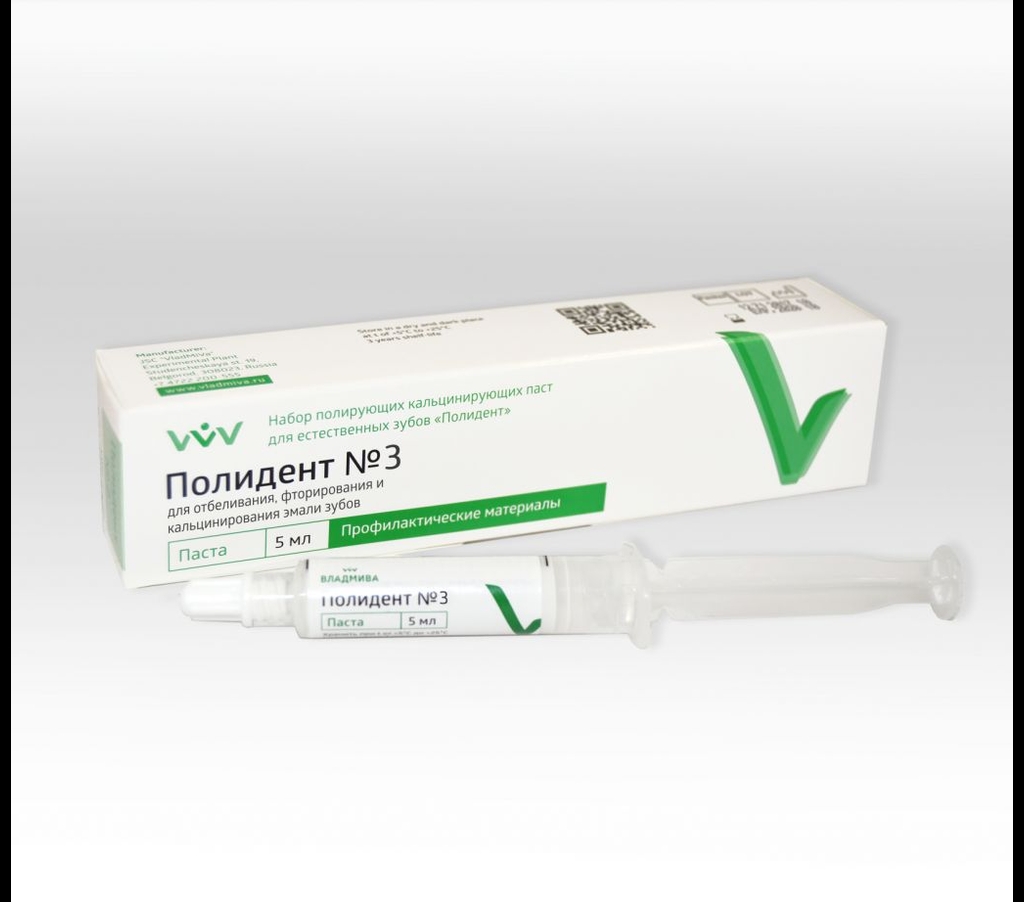 Полидент №3 (с фтором) паста для отбел. зубн. эмали, ее реминерализации и фториров 5мл (Владмива)