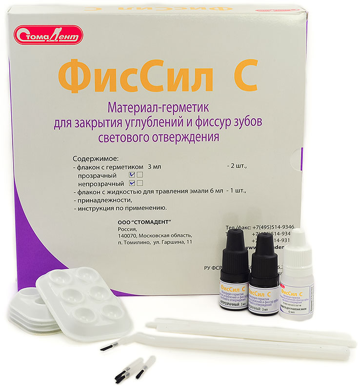 ФисСил С герметик для фиссур светового отвержд. (фл. 3мл унив. ж, фл. 3мл кат. ж, фл. 6мл ж/травл)