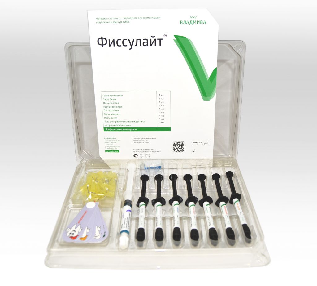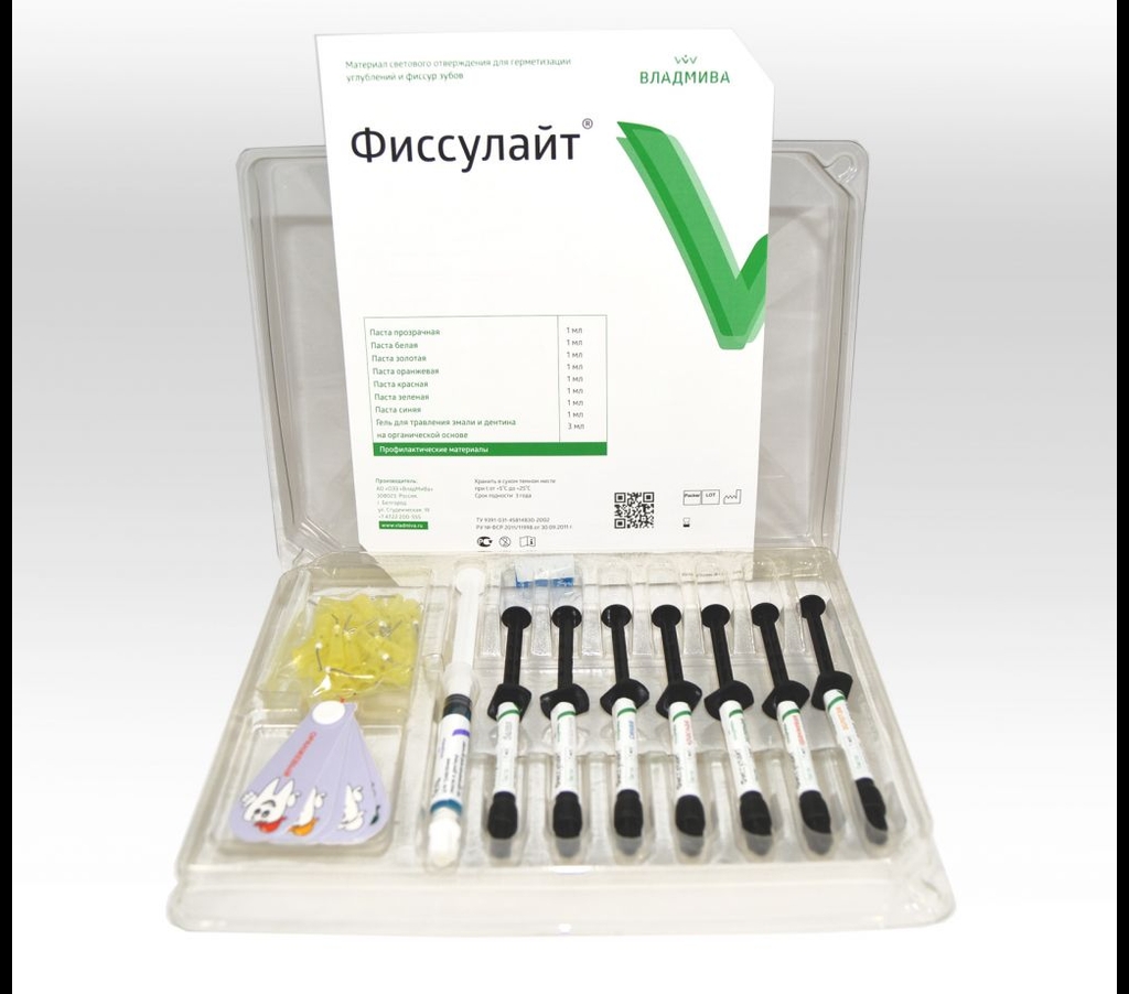 Фиссулайт набор 7 цветов (шприцы по 1 мл) + гель для травления на орг.осн 3мл