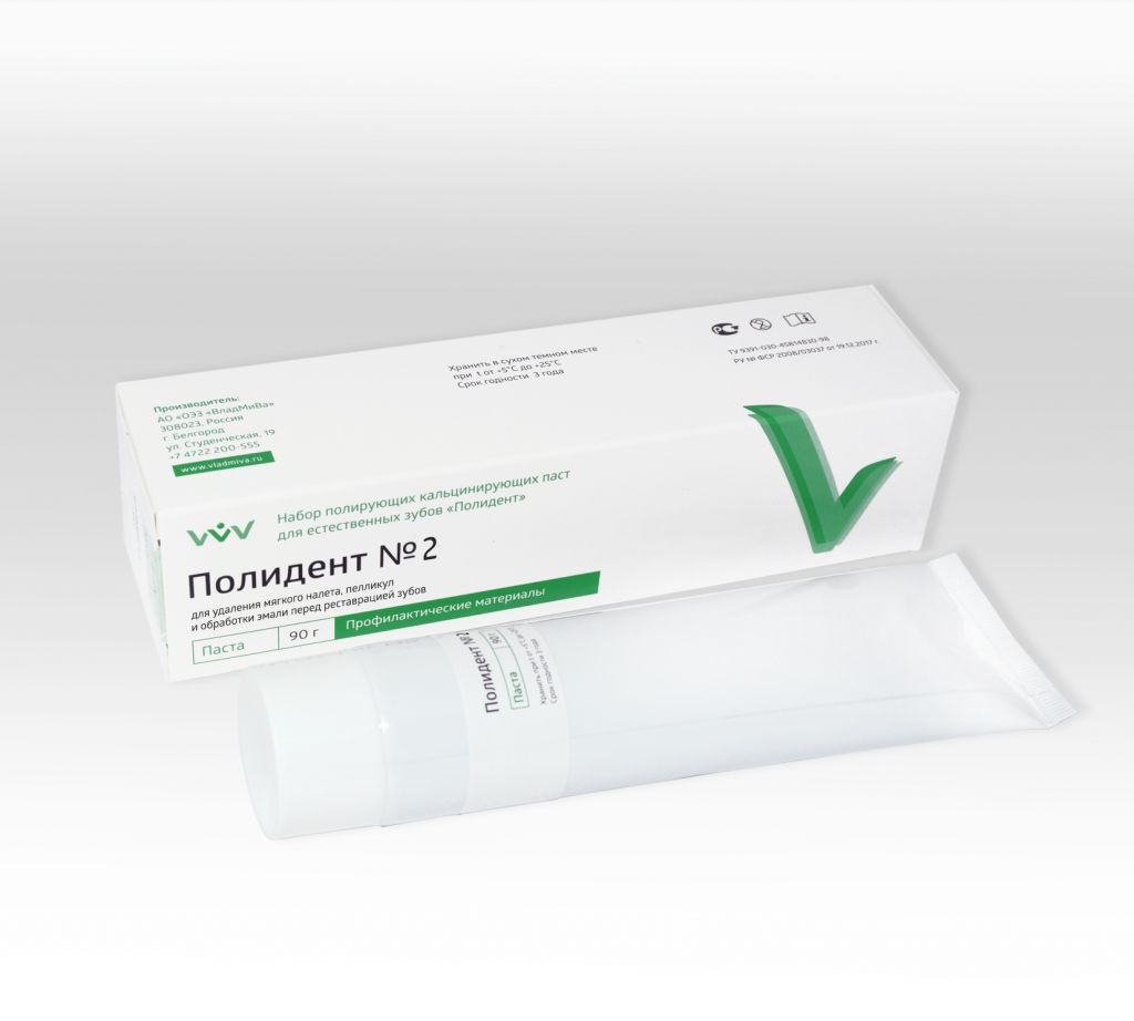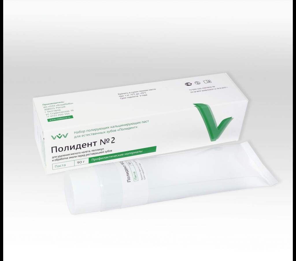 Полидент №2 паста для удаления мягкого налета, пелликул и очистки эмали 90г (Владмива)