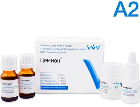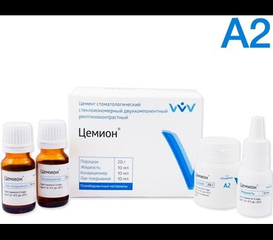 Цемион А2 - универс. подкл. реставр. стеклополиалкенатный цемент хим. отв, уп-20г, 10мл,10мл, 10мл