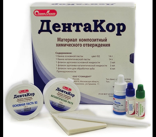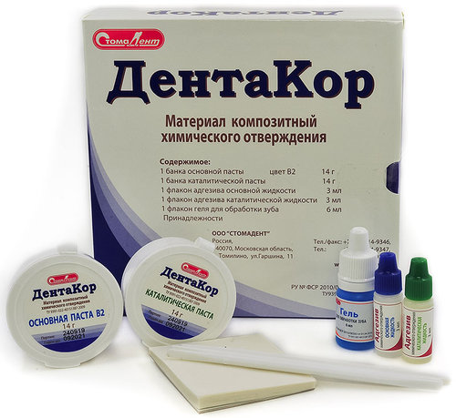 Дентакор паста/паста 14+14г, композитный материал хим. отверждения для восстановления культи зуба