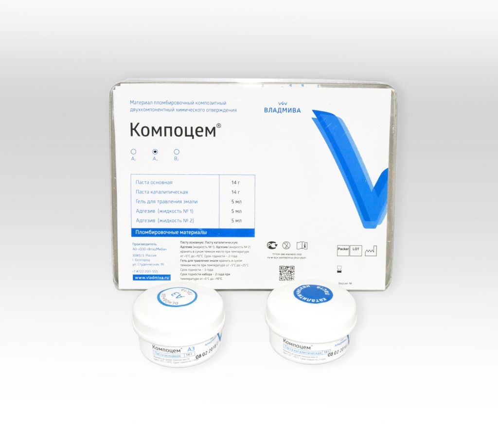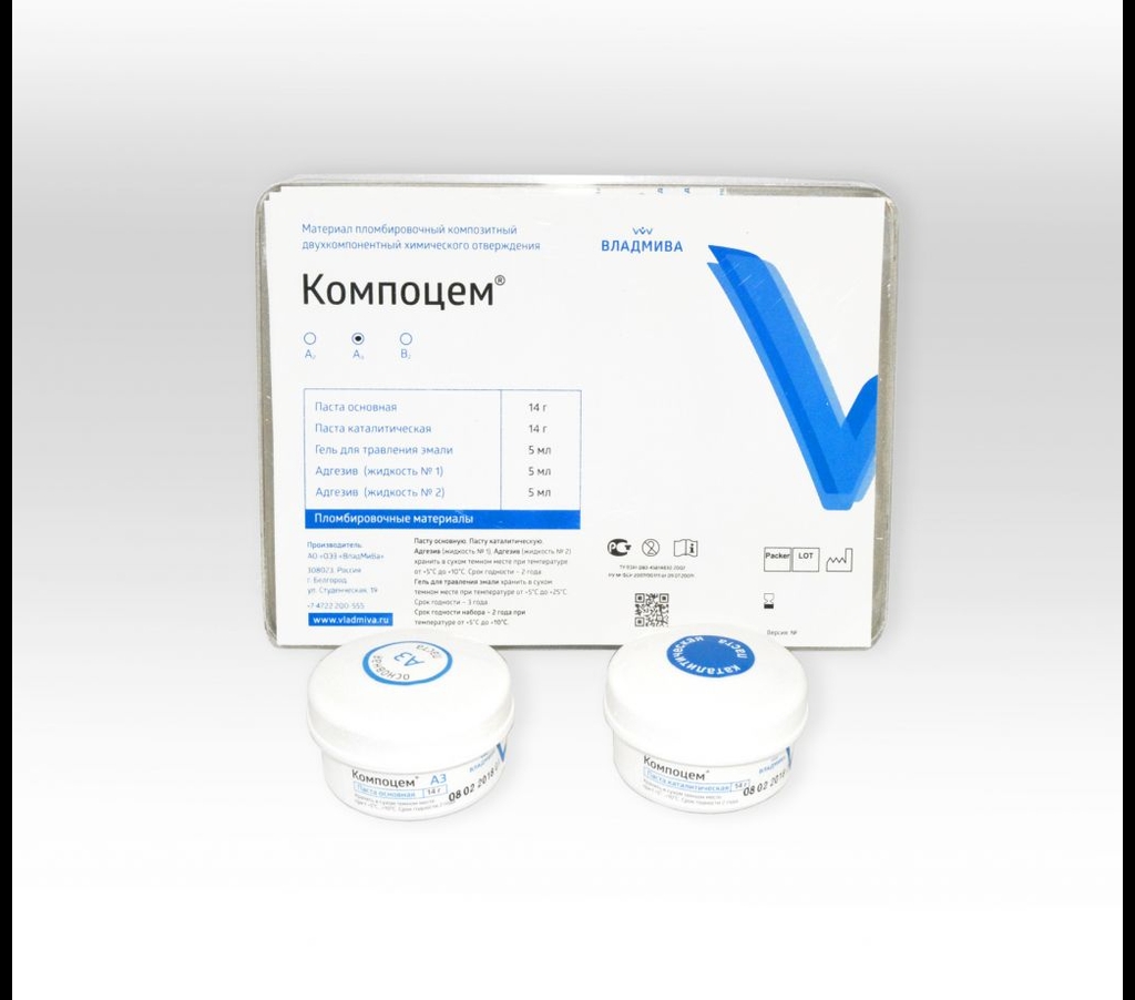 Компоцем А3 (паста-паста 14гр+14гр) композитный пломбировочный материал хим. отверждения (Владмива)