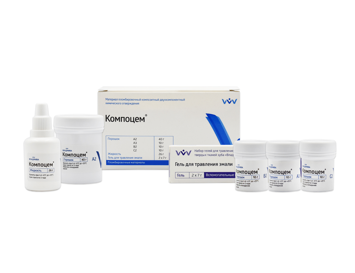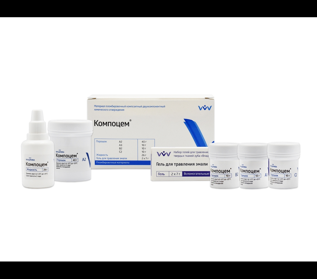 Компоцем набор (70г+26г+гель для травления) пломбир. композитный 2х компон. материал хим. отвержд.