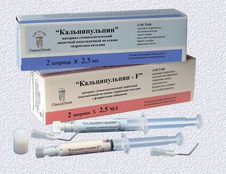 Кальципульпин-F - лечебная прокладка, уп.- 2 шпр. по 2.5г + 4 канюли + контейнер (Омега)