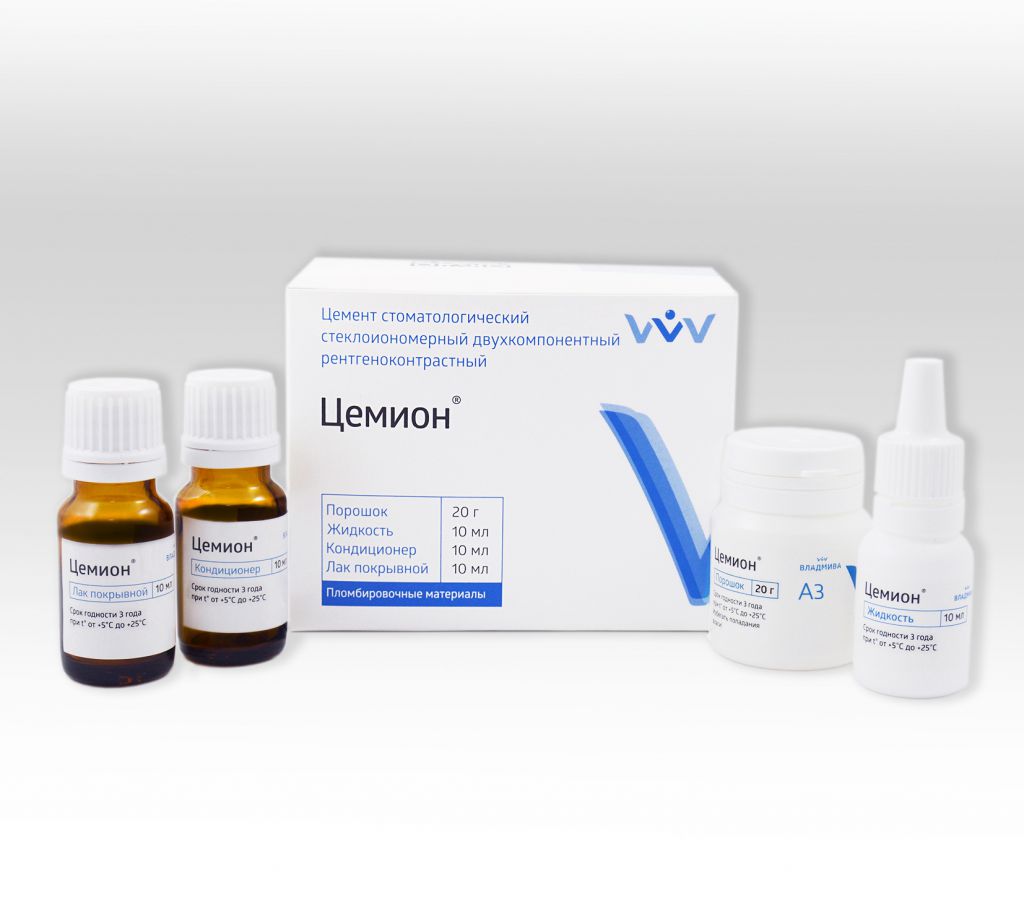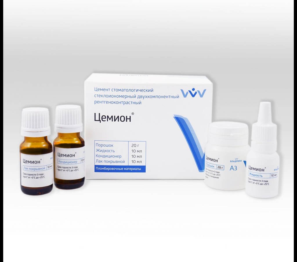 Цемион А3 - универс. подкл. реставр. стеклополиалкенатный цемент хим. отв, уп-20г, 10мл,10мл, 10мл