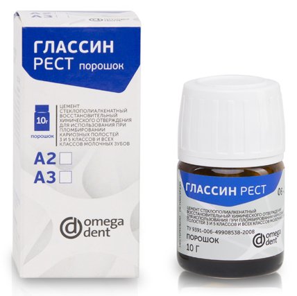 Глассин Рест A2 - стеклоиономерный пломбировочный цемент, уп- порошок10г + жидкость 8мл (Омега)
