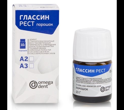 Глассин Рест A3 - стеклоиономерный пломбировочный цемент, уп- порошок10г + жидкость 8мл (Омега)