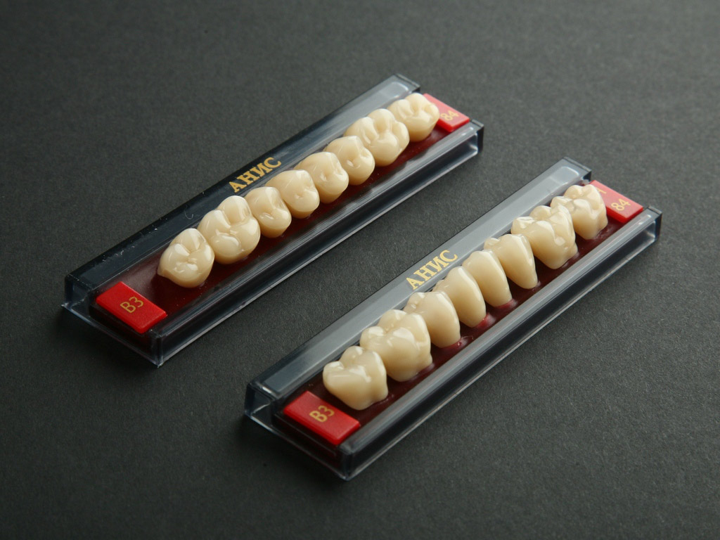Зубы "Анис профи" жевательные верх, планка - 8 зубов, цвет A2, фасон 84, акриловые 3х слойные
