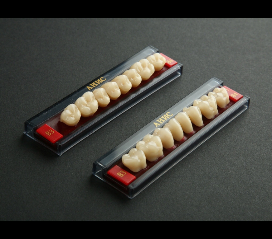 Зубы "Анис профи" жевательные верх, планка - 8 зубов, цвет A3, фасон 82, акриловые 3х слойные