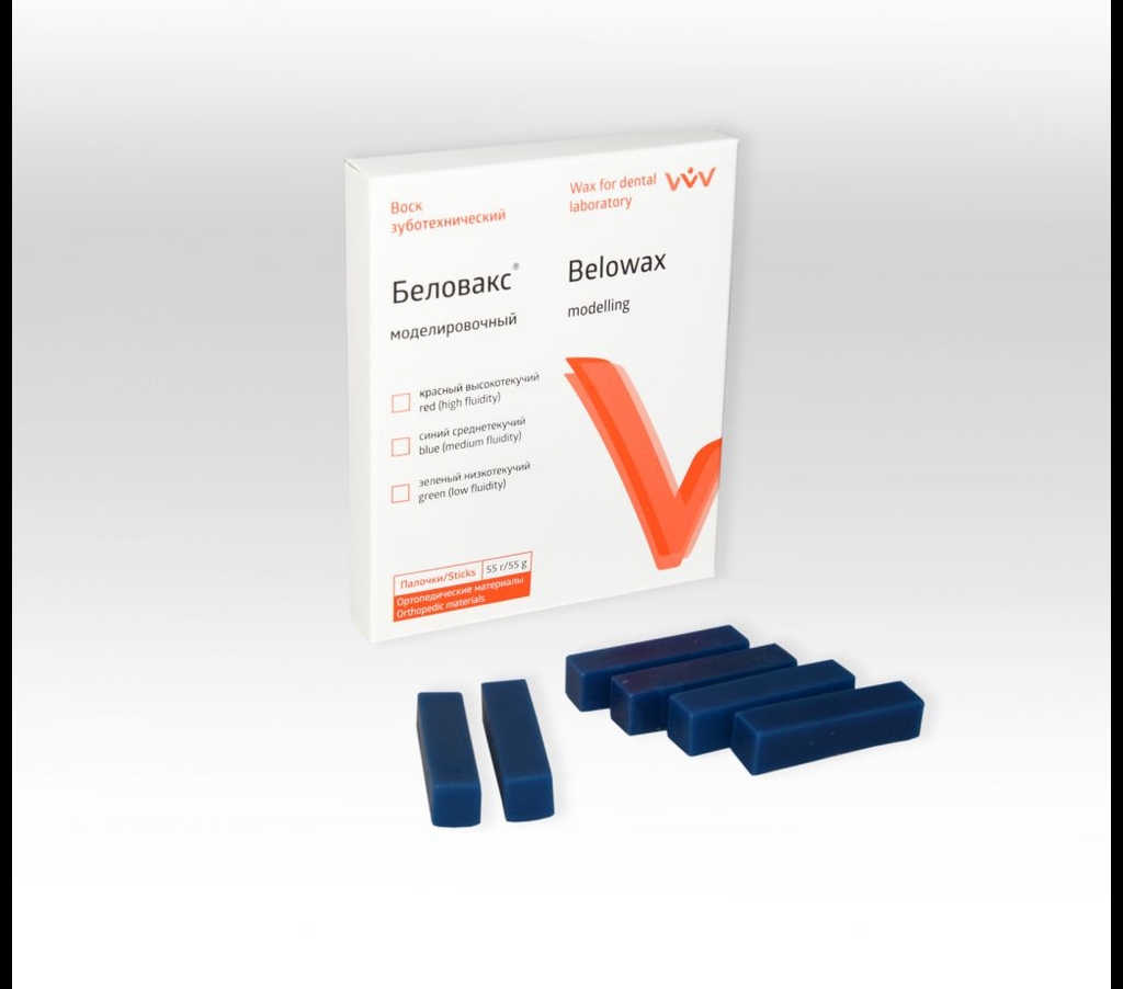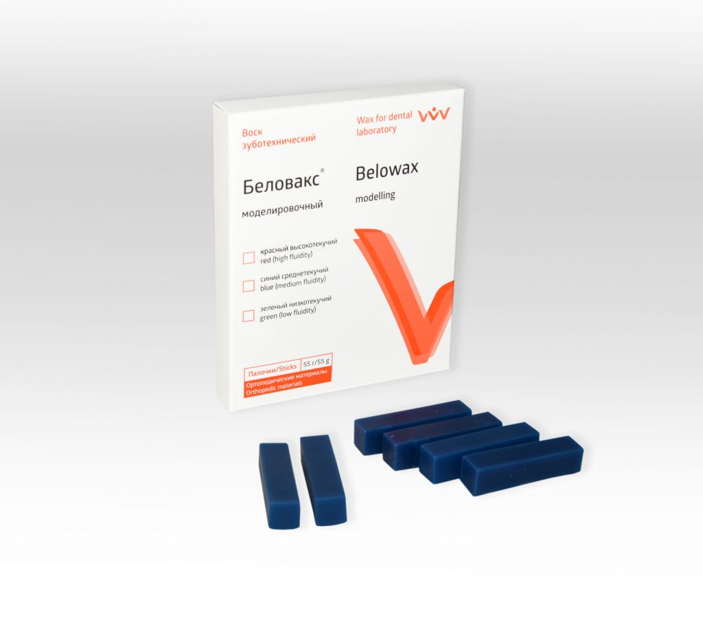 Воск моделировочный, ср. текучести - синий, уп. брусок-55г (Владмива)